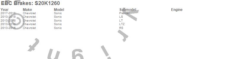 Below is an abreviated list of applications for the S20 Kits Ultimax and Plain Rotors.