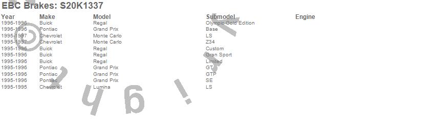 Below is an abreviated list of applications for the S20 Kits Ultimax and Plain Rotors.