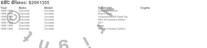 Below is an abreviated list of applications for the S20 Kits Ultimax and Plain Rotors.