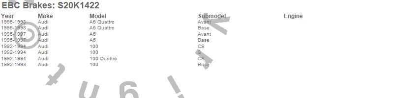 Below is an abreviated list of applications for the S20 Kits Ultimax and Plain Rotors.