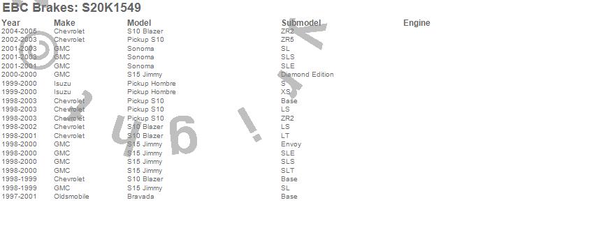 Below is an abreviated list of applications for the S20 Kits Ultimax and Plain Rotors.