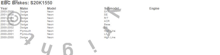 Below is an abreviated list of applications for the S20 Kits Ultimax and Plain Rotors.