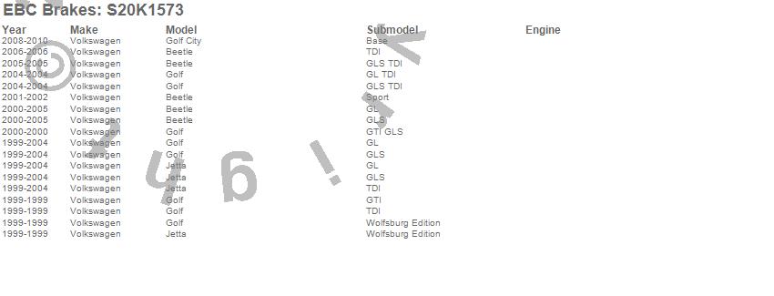 Below is an abreviated list of applications for the S20 Kits Ultimax and Plain Rotors.