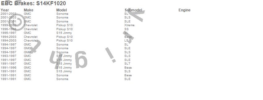Below is an abreviated list of applications for the S14 Kits Greenstuff and RK Rotors SUV.