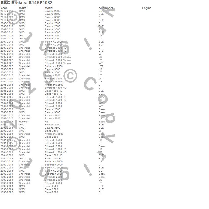 Below is an abreviated list of applications for the S14 Kits Greenstuff and RK Rotors SUV.
