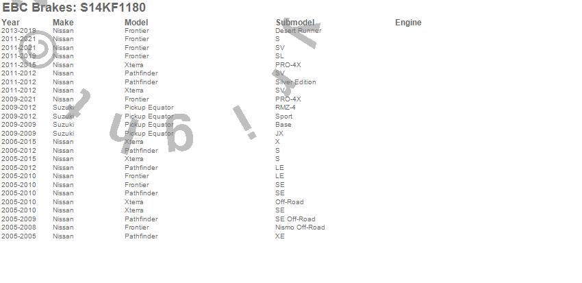 Below is an abreviated list of applications for the S14 Kits Greenstuff and RK Rotors SUV.