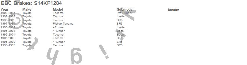 Below is an abreviated list of applications for the S14 Kits Greenstuff and RK Rotors SUV.