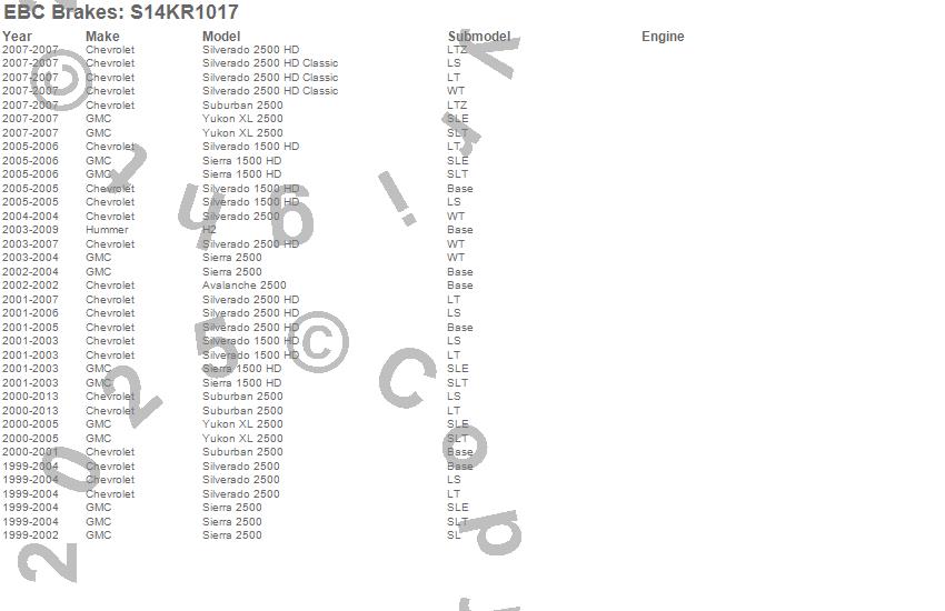 Below is an abreviated list of applications for the S14 Kits Greenstuff and RK Rotors SUV.