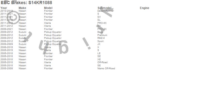 Below is an abreviated list of applications for the S14 Kits Greenstuff and RK Rotors SUV.