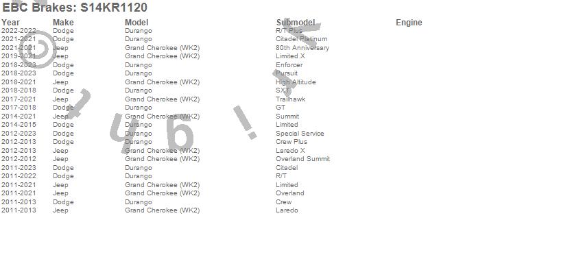 Below is an abreviated list of applications for the S14 Kits Greenstuff and RK Rotors SUV.