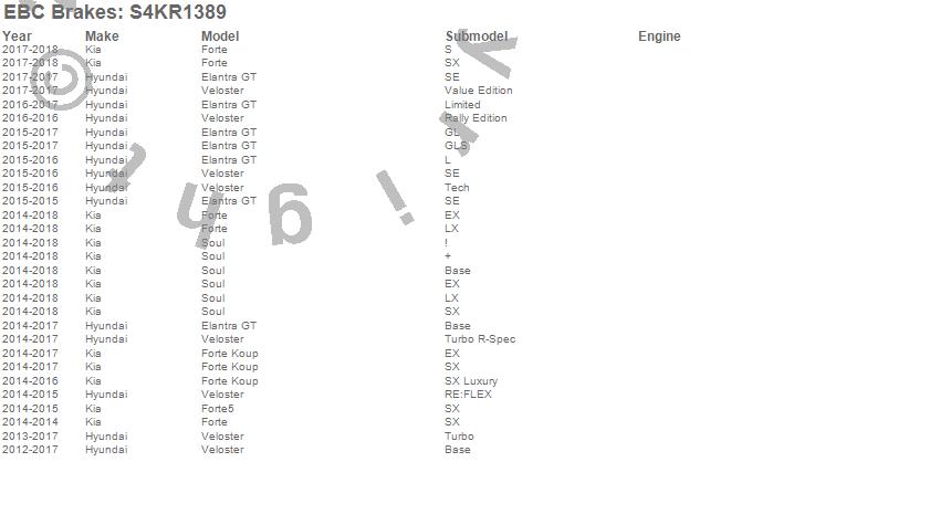 Below is an abreviated list of applications for the S4 Kits Redstuff and USR rotor.