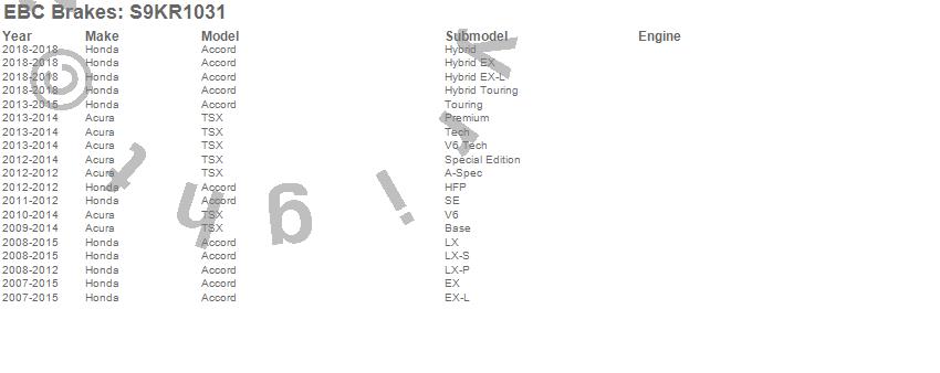 Below is an abreviated list of applications for the S9 Kits Yellowstuff and USR Rotors.