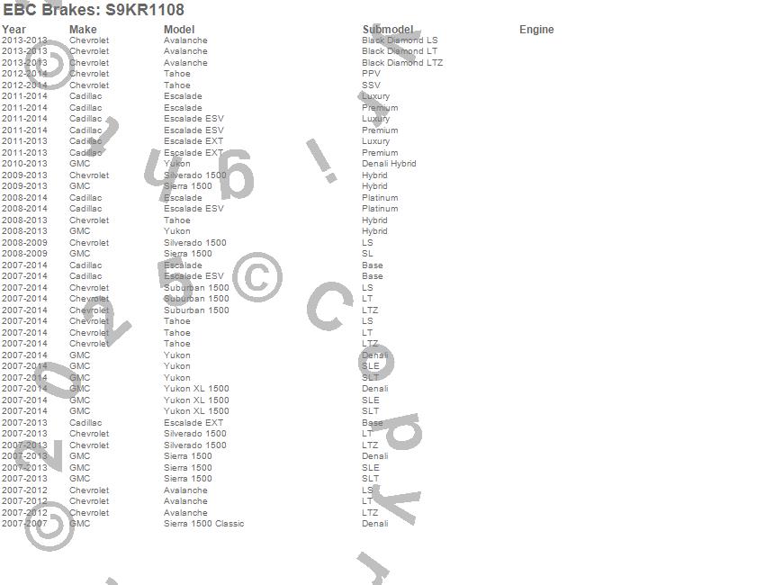 Below is an abreviated list of applications for the S9 Kits Yellowstuff and USR Rotors.