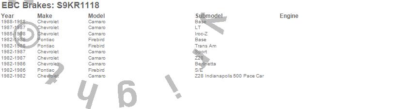 Below is an abreviated list of applications for the S9 Kits Yellowstuff and USR Rotors.