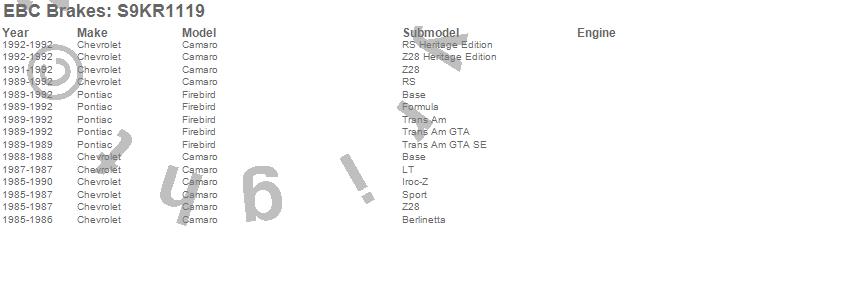 Below is an abreviated list of applications for the S9 Kits Yellowstuff and USR Rotors.