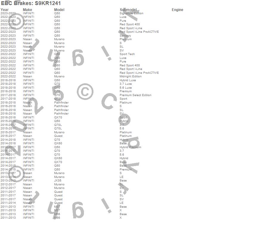 Below is an abreviated list of applications for the S9 Kits Yellowstuff and USR Rotors.