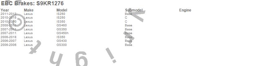 Below is an abreviated list of applications for the S9 Kits Yellowstuff and USR Rotors.