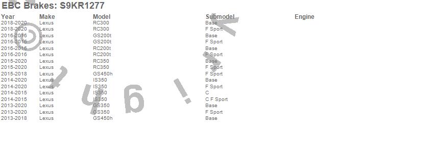 Below is an abreviated list of applications for the S9 Kits Yellowstuff and USR Rotors.