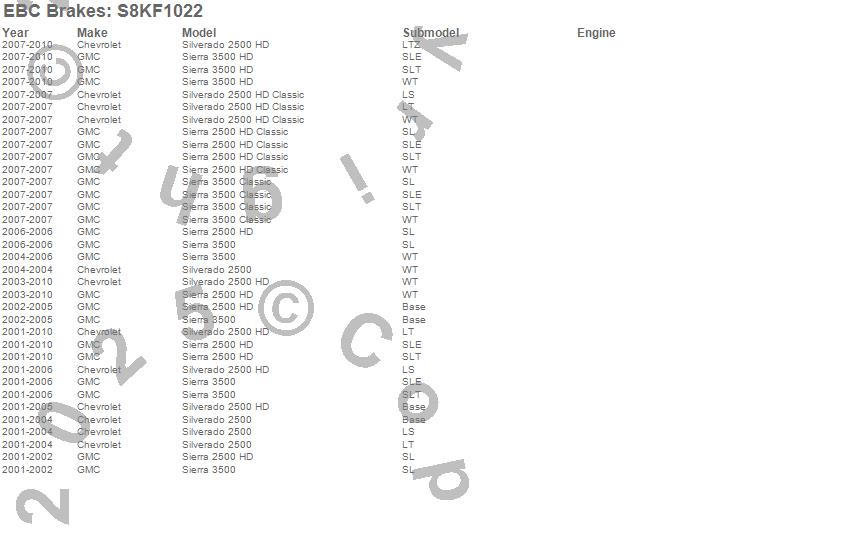 Below is an abreviated list of applications for the S8 Kits Orangestuff and GD Rotors.