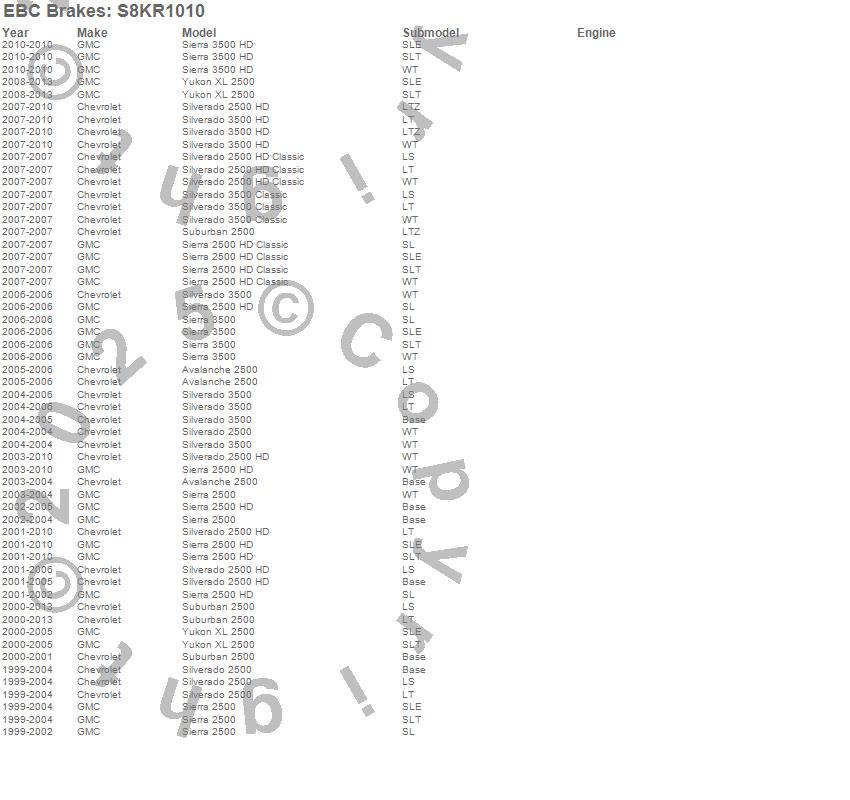 Below is an abreviated list of applications for the S8 Kits Orangestuff and GD Rotors.