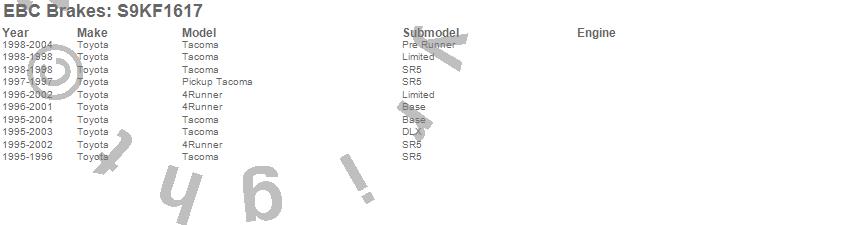 Below is an abreviated list of applications for the S9 Kits Yellowstuff and USR Rotors.