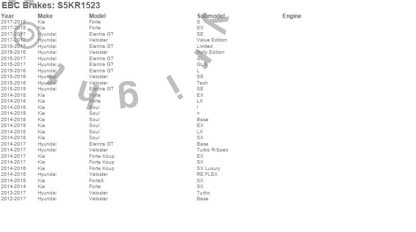 Below is an abreviated list of applications for the S5 Kits yellowstuff And GD Rotors.
