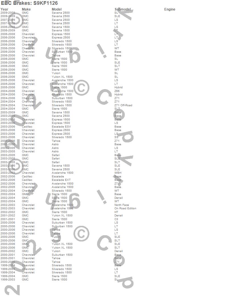 Below is an abreviated list of applications for the S9 Kits Yellowstuff and USR Rotors.