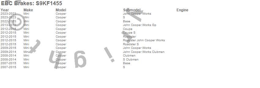 Below is an abreviated list of applications for the S9 Kits Yellowstuff and USR Rotors.