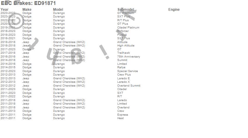 Below is an abreviated list of applications for the EBC Truck/Jeep And SUV Extra Duty Brake Pads.
