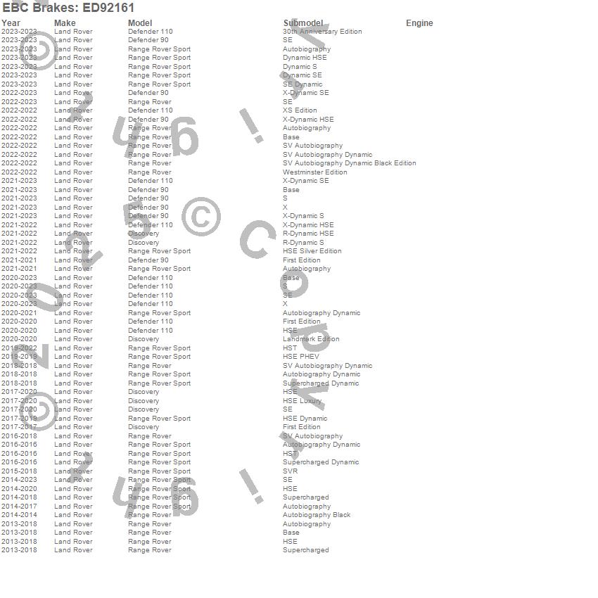 Below is an abreviated list of applications for the EBC Truck/Jeep And SUV Extra Duty Brake Pads.