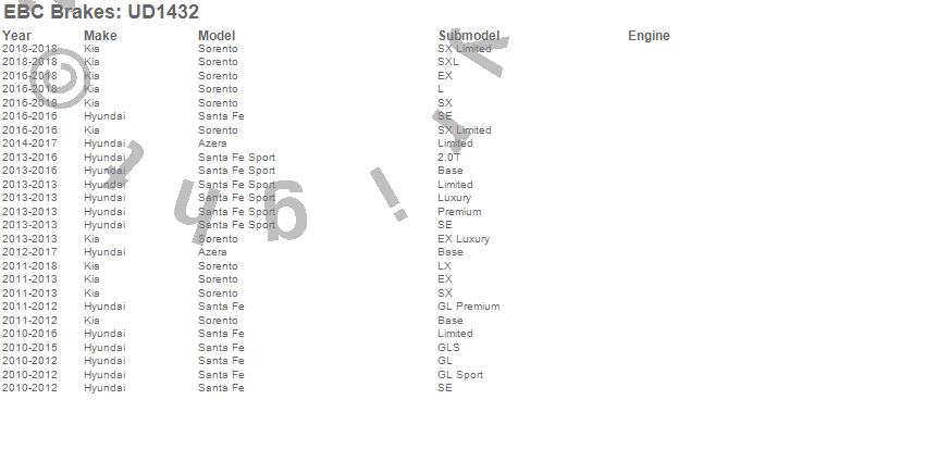 Below is an abreviated list of applications for the EBC Ultimax OEM Replacement Brake Pads.