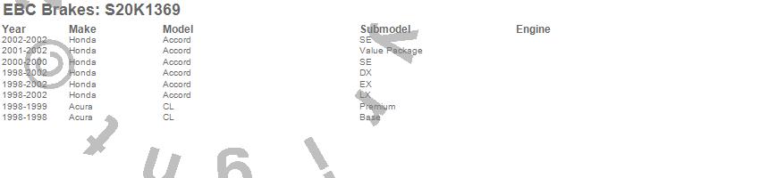 Below is an abreviated list of applications for the S20 Kits Ultimax and Plain Rotors.