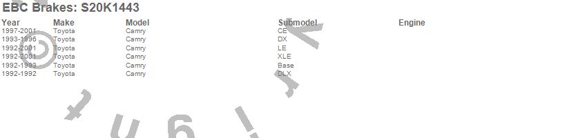 Below is an abreviated list of applications for the S20 Kits Ultimax and Plain Rotors.