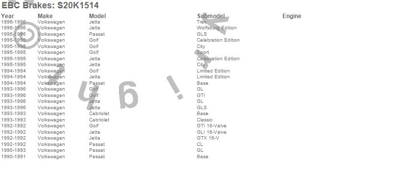 Below is an abreviated list of applications for the S20 Kits Ultimax and Plain Rotors.