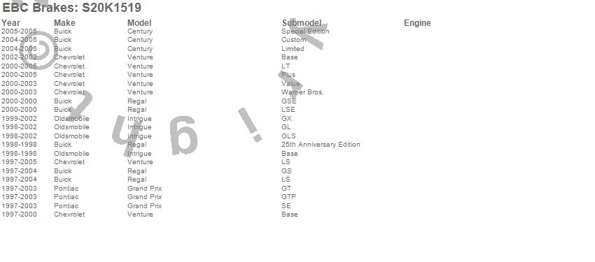 Below is an abreviated list of applications for the S20 Kits Ultimax and Plain Rotors.