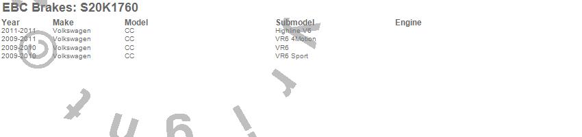 Below is an abreviated list of applications for the S20 Kits Ultimax and Plain Rotors.
