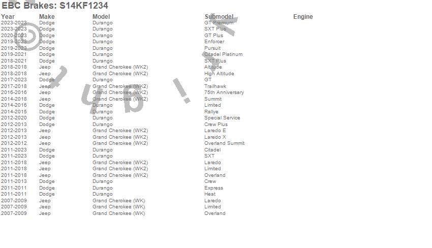 Below is an abreviated list of applications for the S14 Kits Greenstuff and RK Rotors SUV.