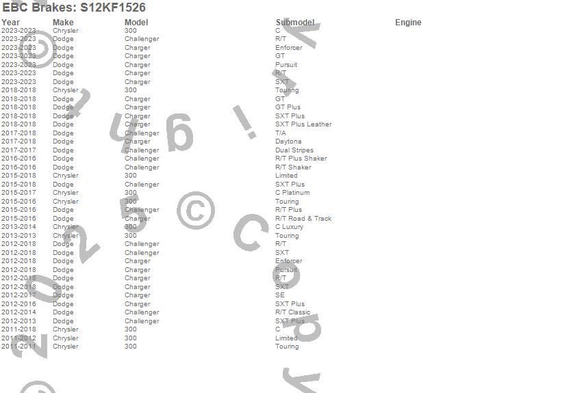 Below is an abreviated list of applications for the S12 Kits Redstuff and RK Rotors.