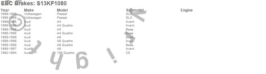 Below is an abreviated list of applications for the S13 Kits Yellowstuff and RK Rotors.