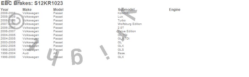 Below is an abreviated list of applications for the S12 Kits Redstuff and RK Rotors.