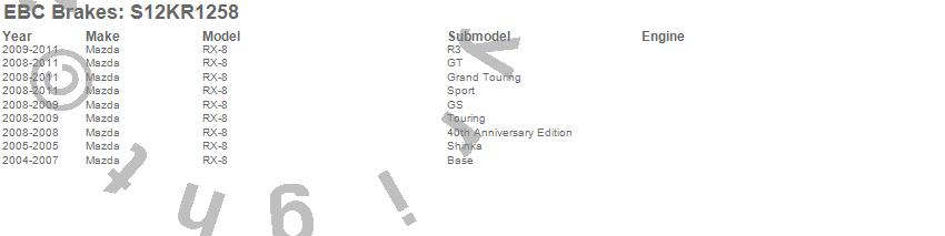 Below is an abreviated list of applications for the S12 Kits Redstuff and RK Rotors.