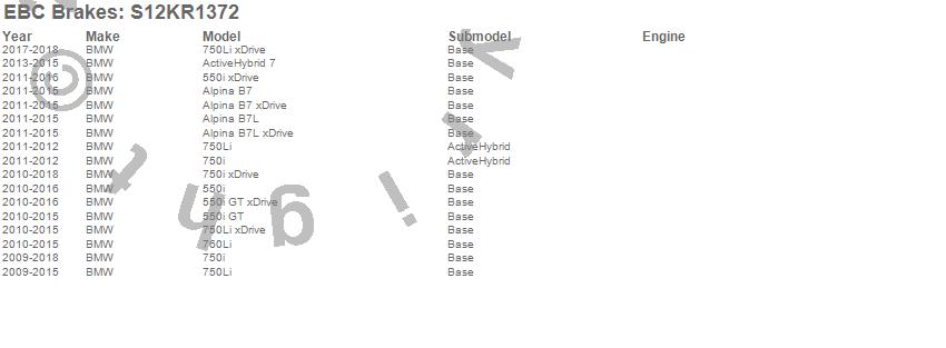 Below is an abreviated list of applications for the S12 Kits Redstuff and RK Rotors.