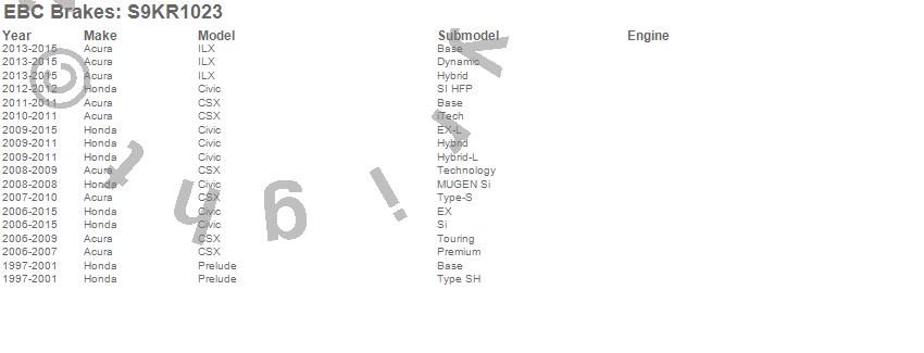 Below is an abreviated list of applications for the S9 Kits Yellowstuff and USR Rotors.