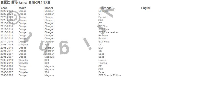 Below is an abreviated list of applications for the S9 Kits Yellowstuff and USR Rotors.