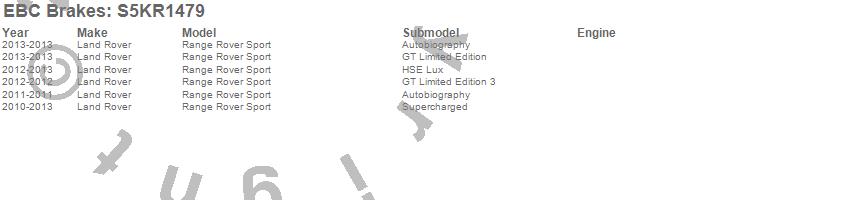 Below is an abreviated list of applications for the S5 Kits yellowstuff And GD Rotors.