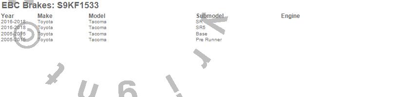 Below is an abreviated list of applications for the S9 Kits Yellowstuff and USR Rotors.