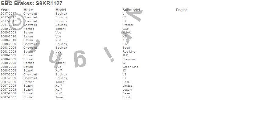 Below is an abreviated list of applications for the S9 Kits Yellowstuff and USR Rotors.