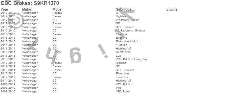 Below is an abreviated list of applications for the S9 Kits Yellowstuff and USR Rotors.