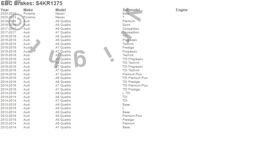 Below is an abreviated list of applications for the S4 Kits Redstuff and USR rotor.
