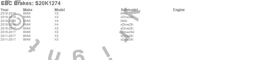 Below is an abreviated list of applications for the S20 Kits Ultimax and Plain Rotors.